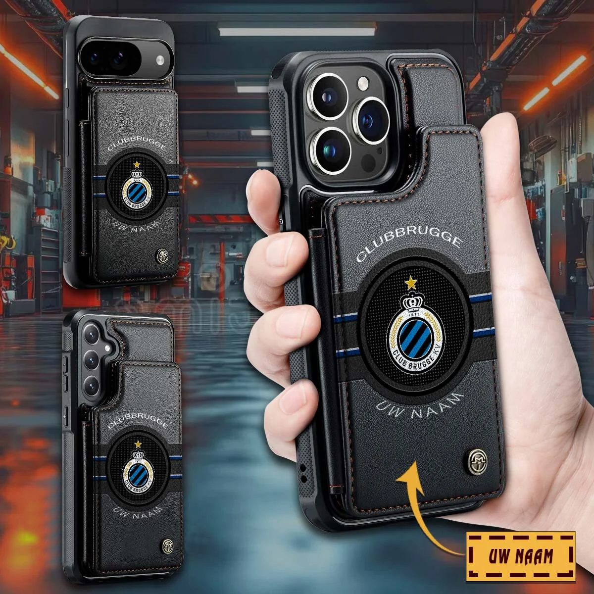 Club Brugge KV Aangepaste Naam Nieuwe stijl Leren Telefoonhoesje
